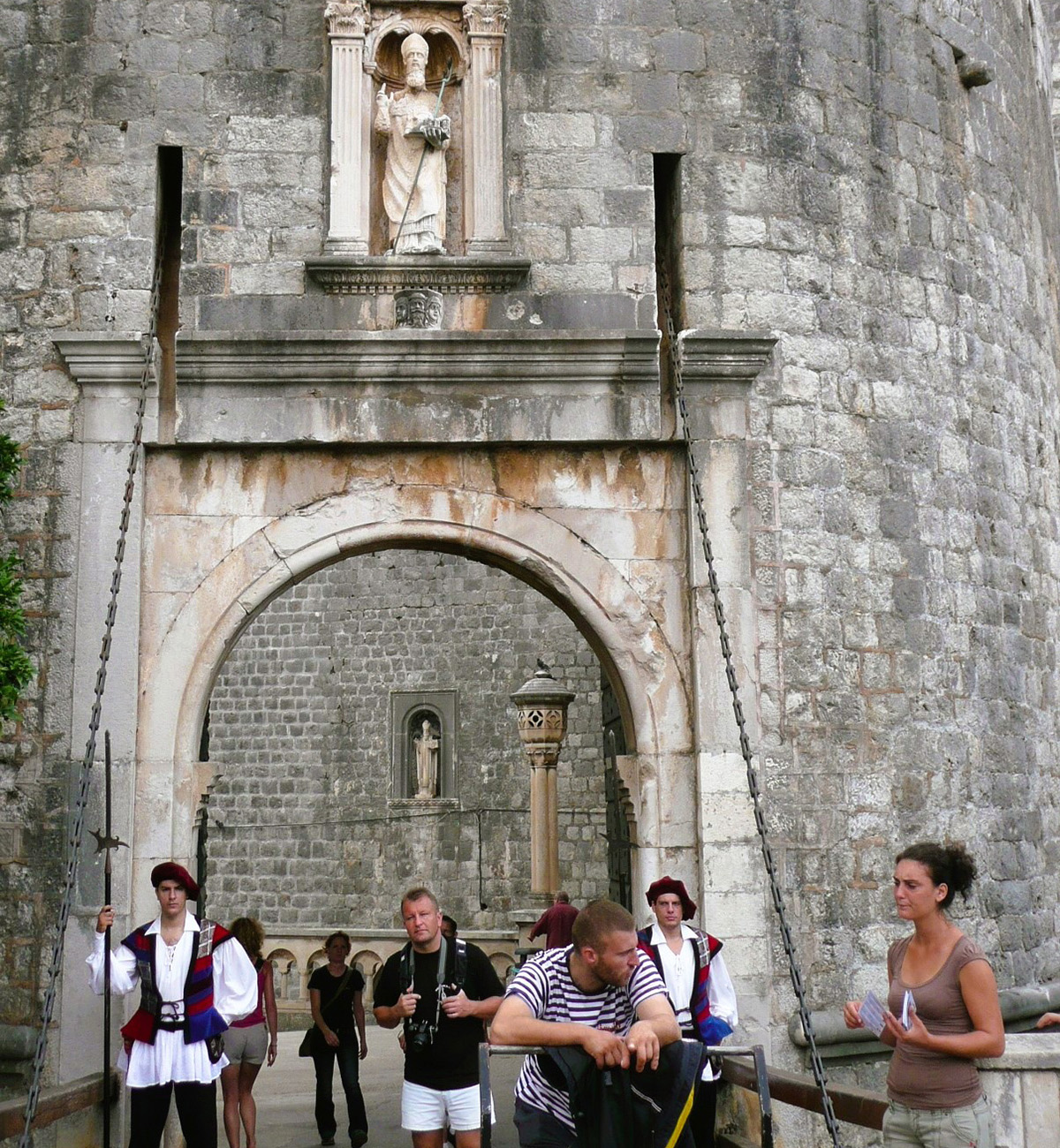 Pile Gate. The 16th century double-gate to the Old CityThe Stradun, the main street of the walled Old City, is paved in limestone, houses are capped in red-tile roofs, and its cream-colored stone walls set against a backdrop of the sparkling blue Adriatic Sea are magical, especially at sunrise and sunset.