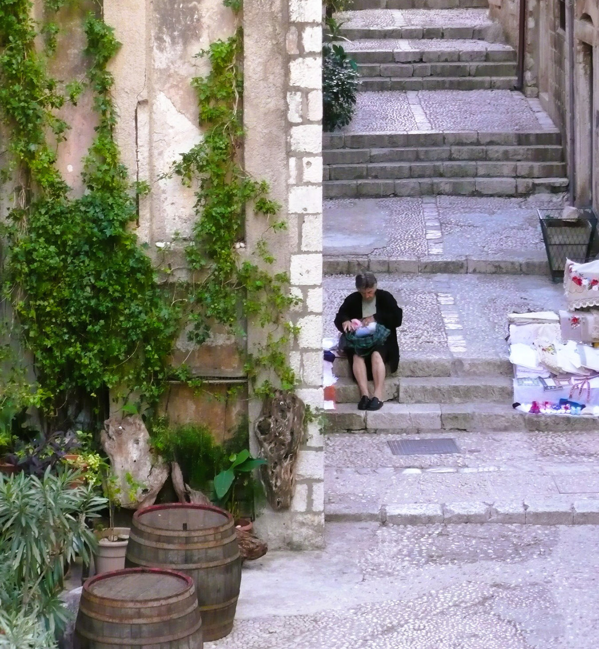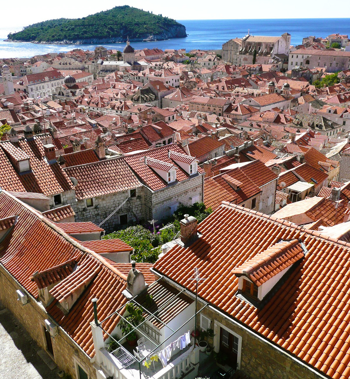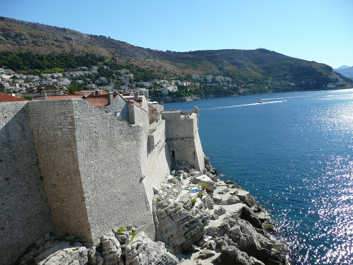 The fortified walls against a backdrop of the sparkling sea.One of the highlights of Dubrovnik is an early-morning walk along the top of the walls that surround the Old Town. Arrive there at 7:20 am to be among the first to get in when the walls open at 8:00 am. The crisp morning air, the tranquility, the aroma of breakfast coming from the houses, and the golden sunshine are an experience that I’ll never forget.