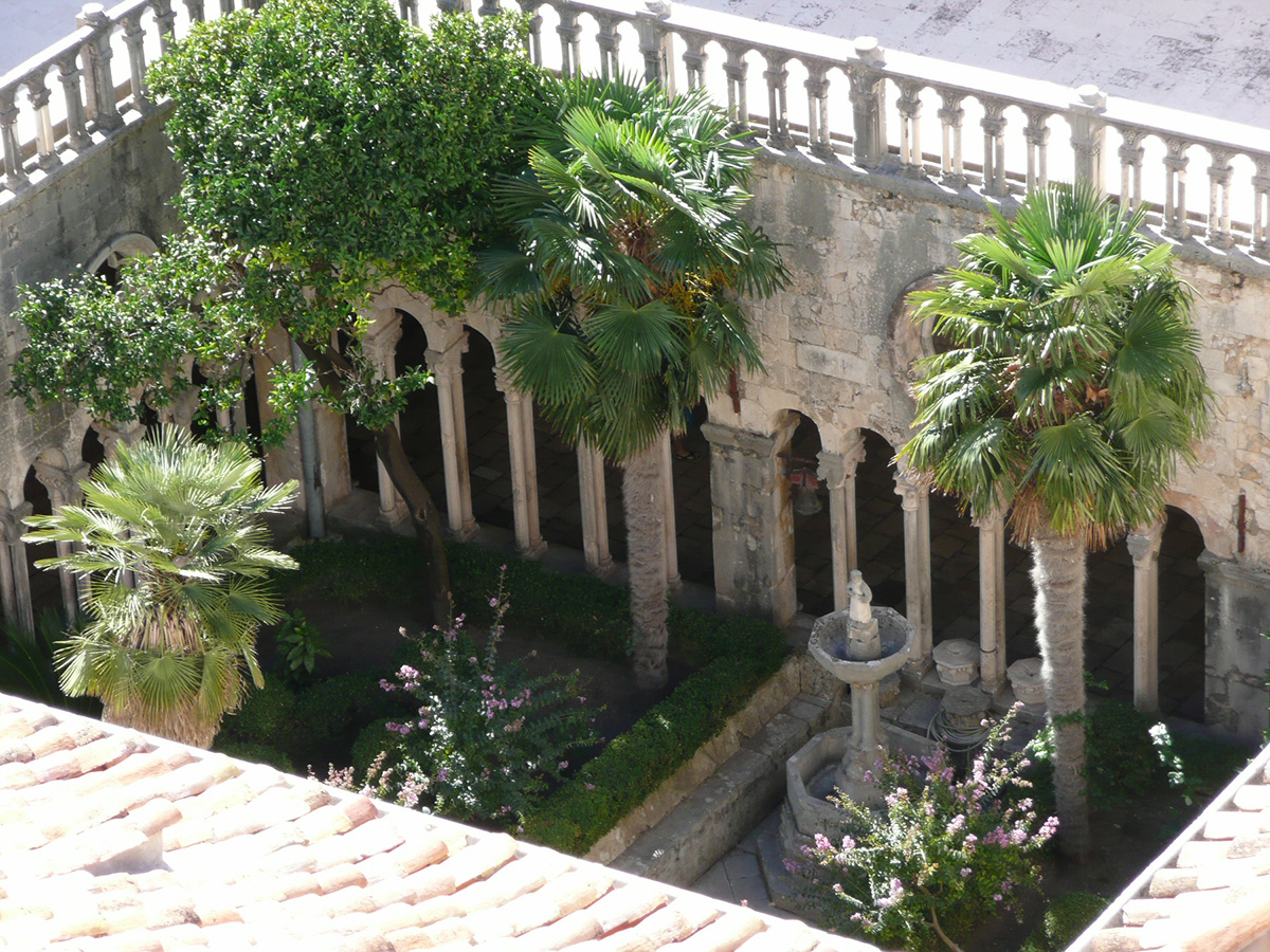 Not to be missed is the view from the walls into the cloister of the 14th-century Romanesque Franciscan Monastery. It has a garden in its midst where an oasis of flowers, palm trees, and rich greenery thrives. The garden is surrounded by 120 slim, elegant Romanesque and Gothic-style columns. The monastery is famous for its pharmacy, dating back to the early 14th century, and its library, which houses thousands of manuscripts and scientific books.