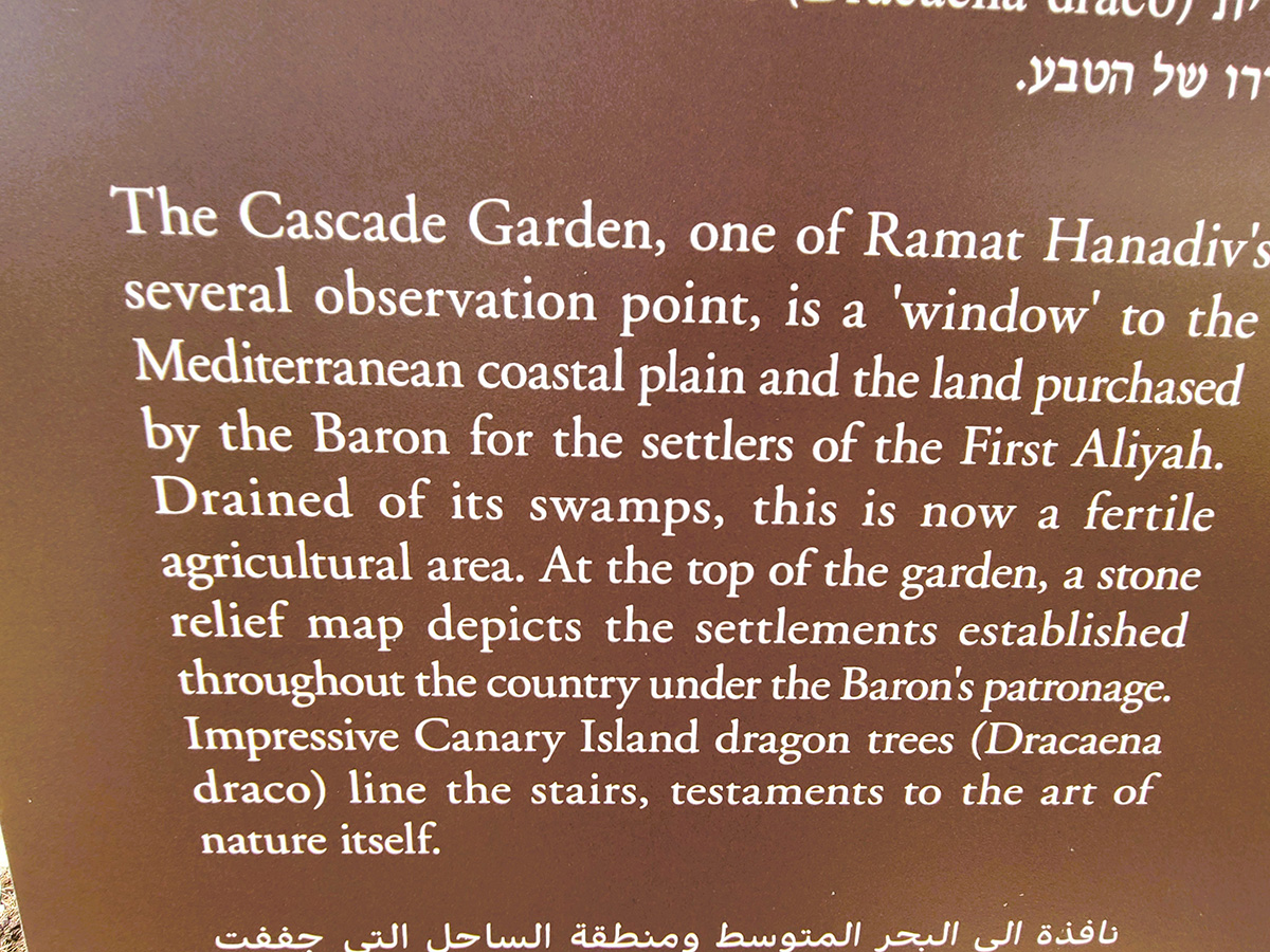 If you leave Ein Hod by 12:30 p.m., you may want to visit the Rothschild Gardens, where Baron Edmond de Rothschild, known as the “Father of the Yishuv,” and his wife, Baroness Adelheid (Ada) von Rothschild, are buried. It’s a twenty-five-minute drive from Ein Hod.