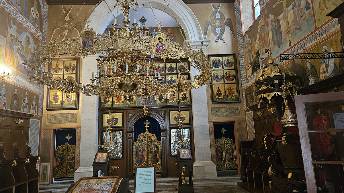A little church worth popping into is the Church of the Assumption, also known as the Church of the Mother of God. It has a rich interior, with walls covered in frescoes and a massive, ornate golden chandelier that sparkles in the beams of light filtering through the upper windows. It’s easy to miss because of its location on a busy cobbled lane.