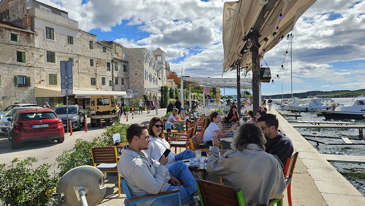 Walk to the end of the waterfront path, and you’ll arrive at Banj Beach, a beach covered in sand and small pebbles. It has a cafe and bar, and the best views of the town, and St. Michael’s Fortress overlooking the Adriatic Sea.